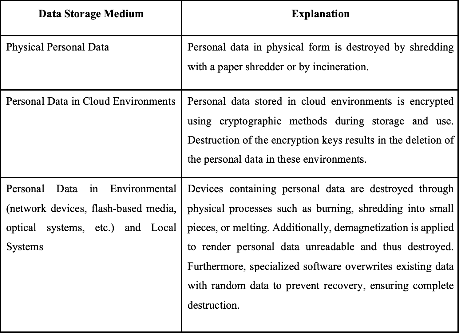 Techniques for Destructions of Personal Data